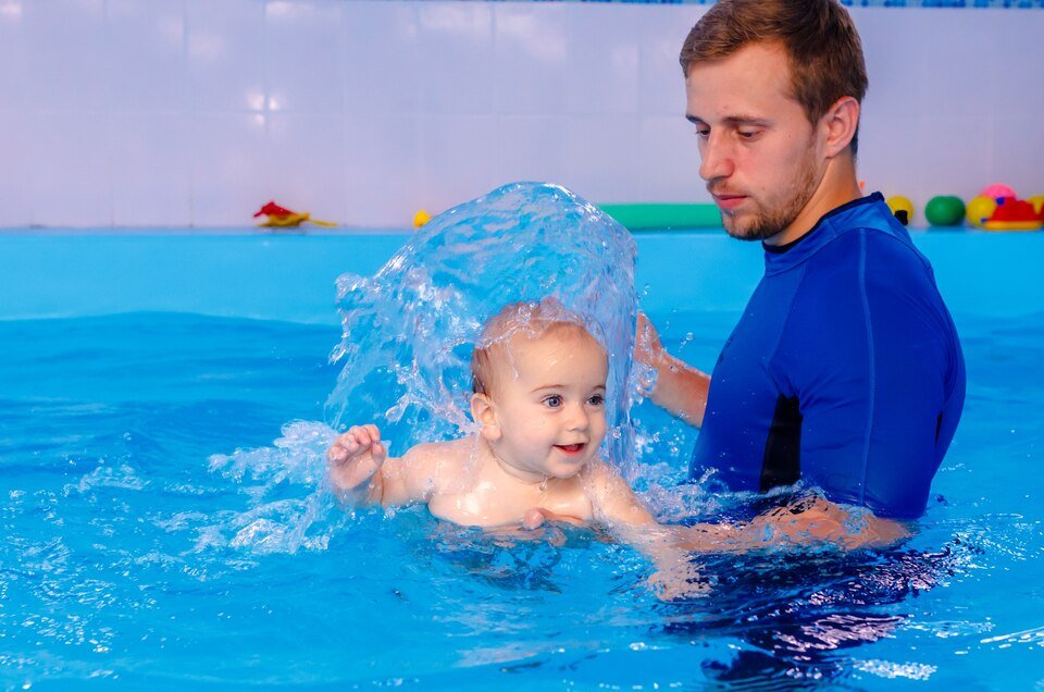 Outcome: Comfort in water, assisted floating, safe pool behavior.